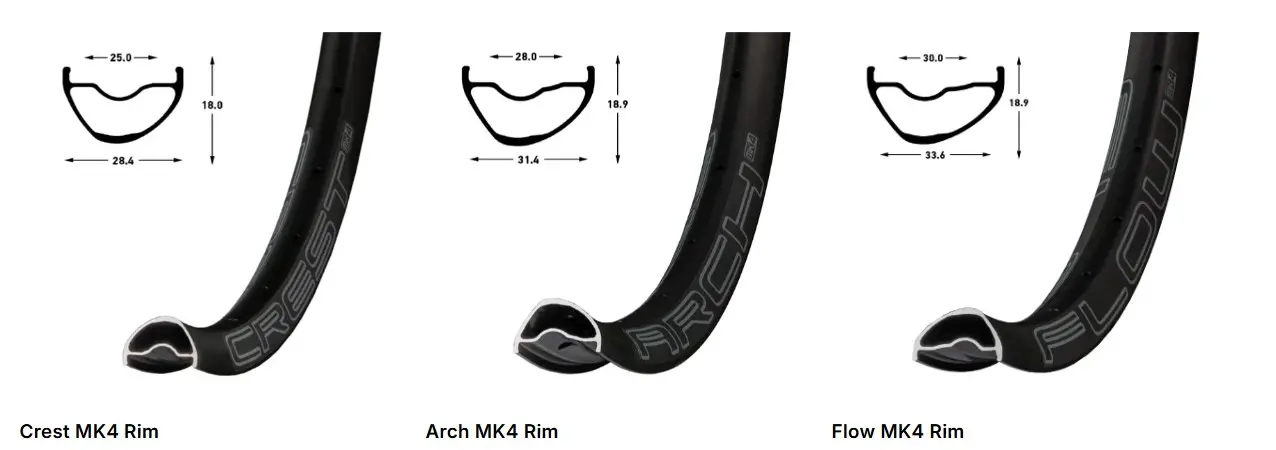 En sus líneas más recientes *MK4, las denominaciones **Crest, Arch y Flow* resumen lo que busca cada tipo de ciclista: una combinación equilibrada entre *anchura, resistencia, peso y uso ideal*.