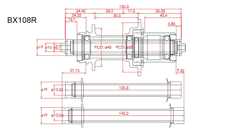 Versión reforzada de la maza BX106, usando el núcleo de cassette tipo MTB para resistir el torque que generan las bicicletas Gravel.